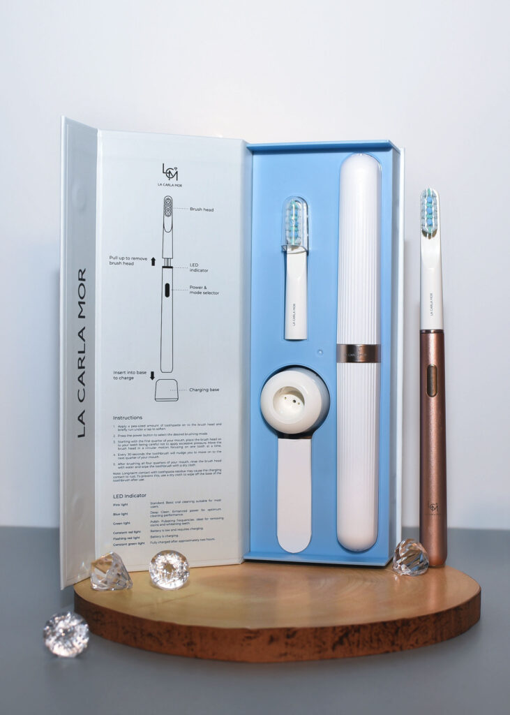 I couldn’t be more satisfied with my La Carla Mor sonic toothbrush. I had issues with bleeding gums, but I noticed significant improvement after a short period of time – the bleeding stopped, and my gums became healthier and less sensitive. The sonic technology provides a thorough yet gentle clean, making me feel like I’ve just had a professional dental cleaning after each use. It’s an excellent investment for anyone looking to improve their oral health. Highly recommended.